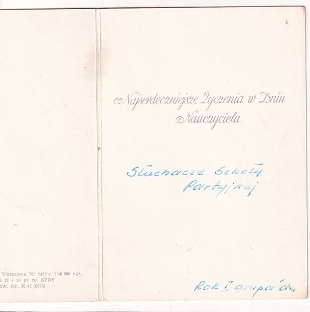 OLGA SIEMASZKO DZIEŃ NAUCZYCIELA KARNET/ POCZTÓWKA GRAF-1506