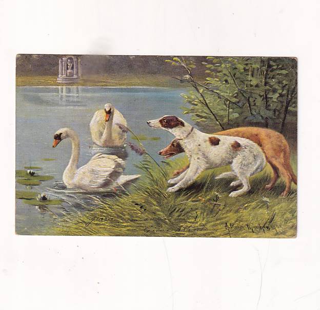 PIES PSY ŁABĘDZIE POCZTÓWKA A2840 AlbP