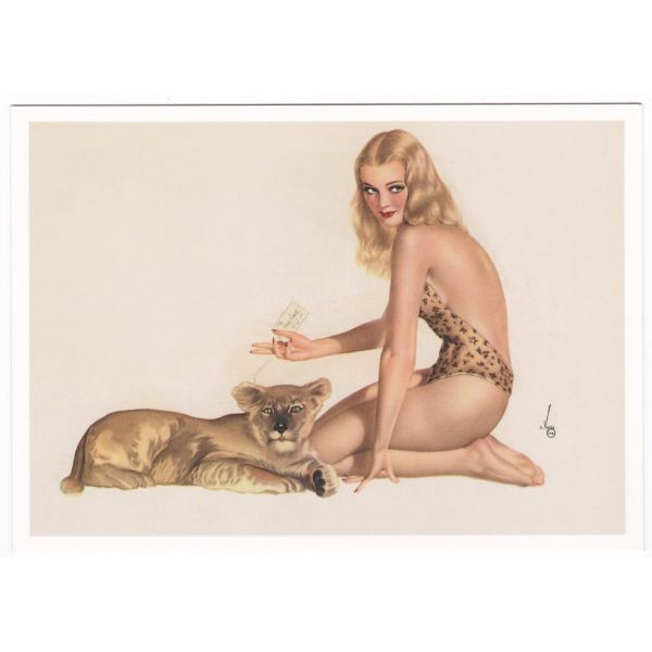 PIN UP GIRL KOBIETA I LEW POCZTÓWKA WR6914