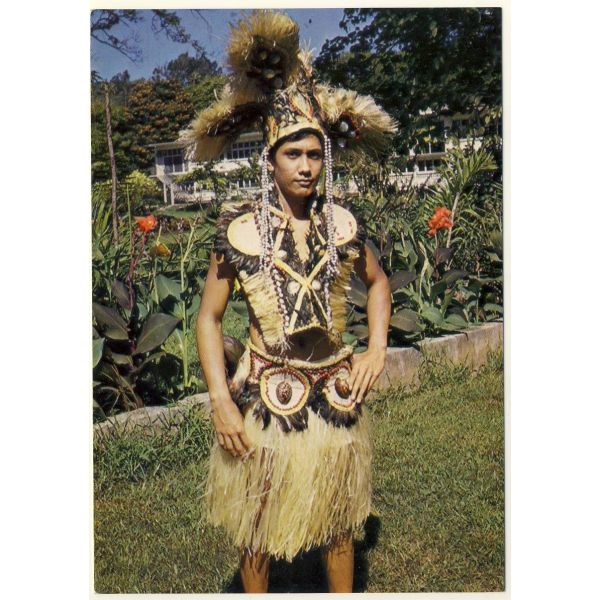 Tahitańczyk w stropolinezyjskim stroju.