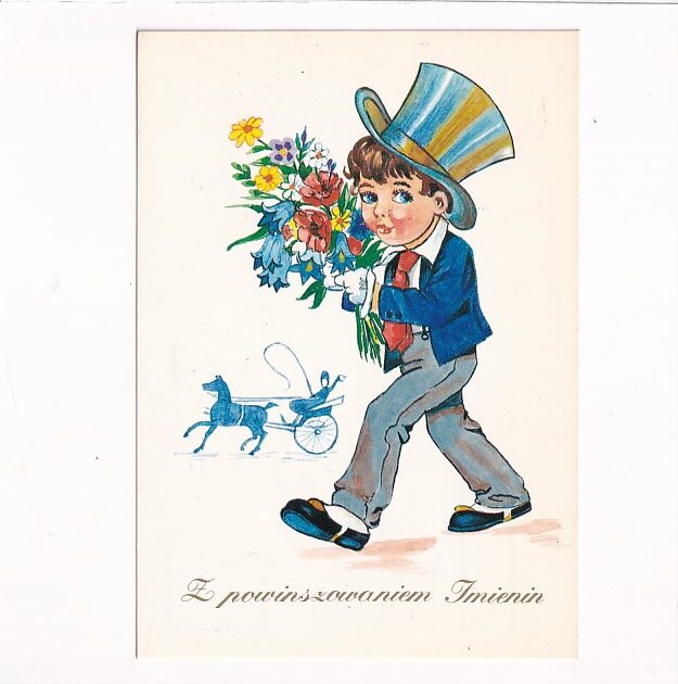 POLSKA CHŁOPCZYK KWIATY ŻYCZENIA POCZTÓWKA GRAF-086