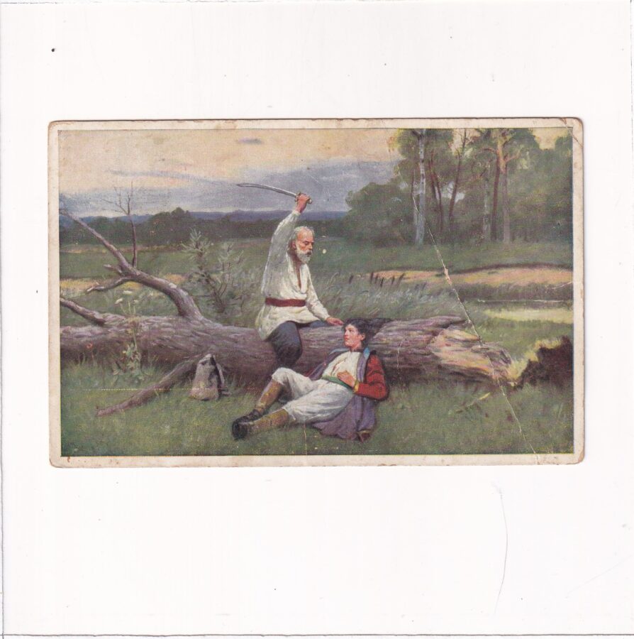 POLSKA MALARSTWO A.PIOTROWSKI „ZAGŁOBA OBCINA WŁOSY HELENIE ” POCZTÓWKA A90418