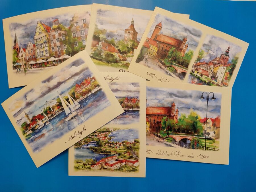 POSTCROSSING Zestaw MAZURY I WARMIA Akwarele 6szt.