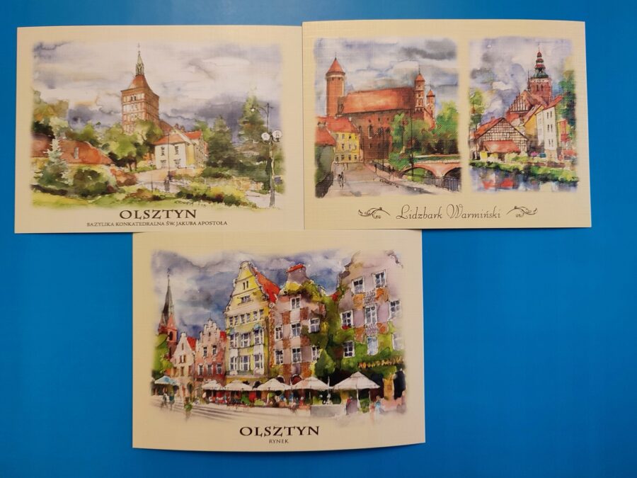 Na widokówkach między innymi: OLSZTYN, LIDZBARK WARMIŃSKI, MIKOŁAJKI i inne.