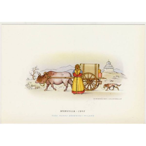 REPUBLICA DEI RAGAZZI POWÓZ MONGOLIA GRAFIKA POCZTÓWKA A15392