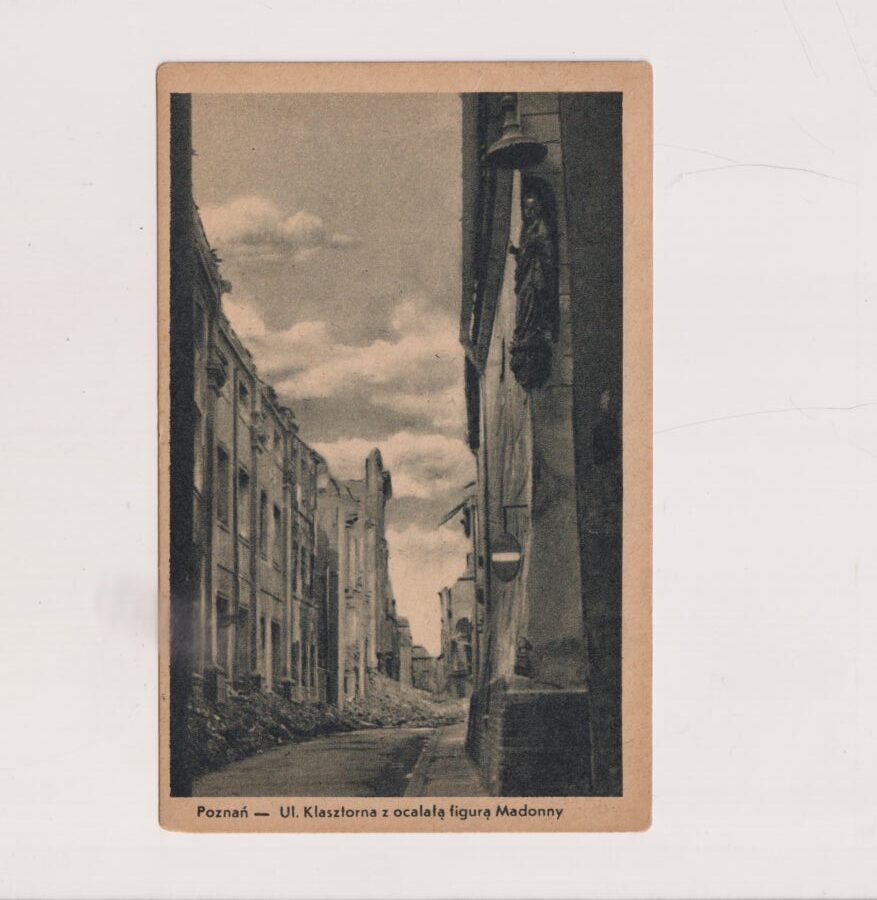 POZNAŃ POSEN UL.KLASZTORNA Z OCALAŁĄ FIGURĄ MADONNY POCZTÓWKA A5291 ALB5