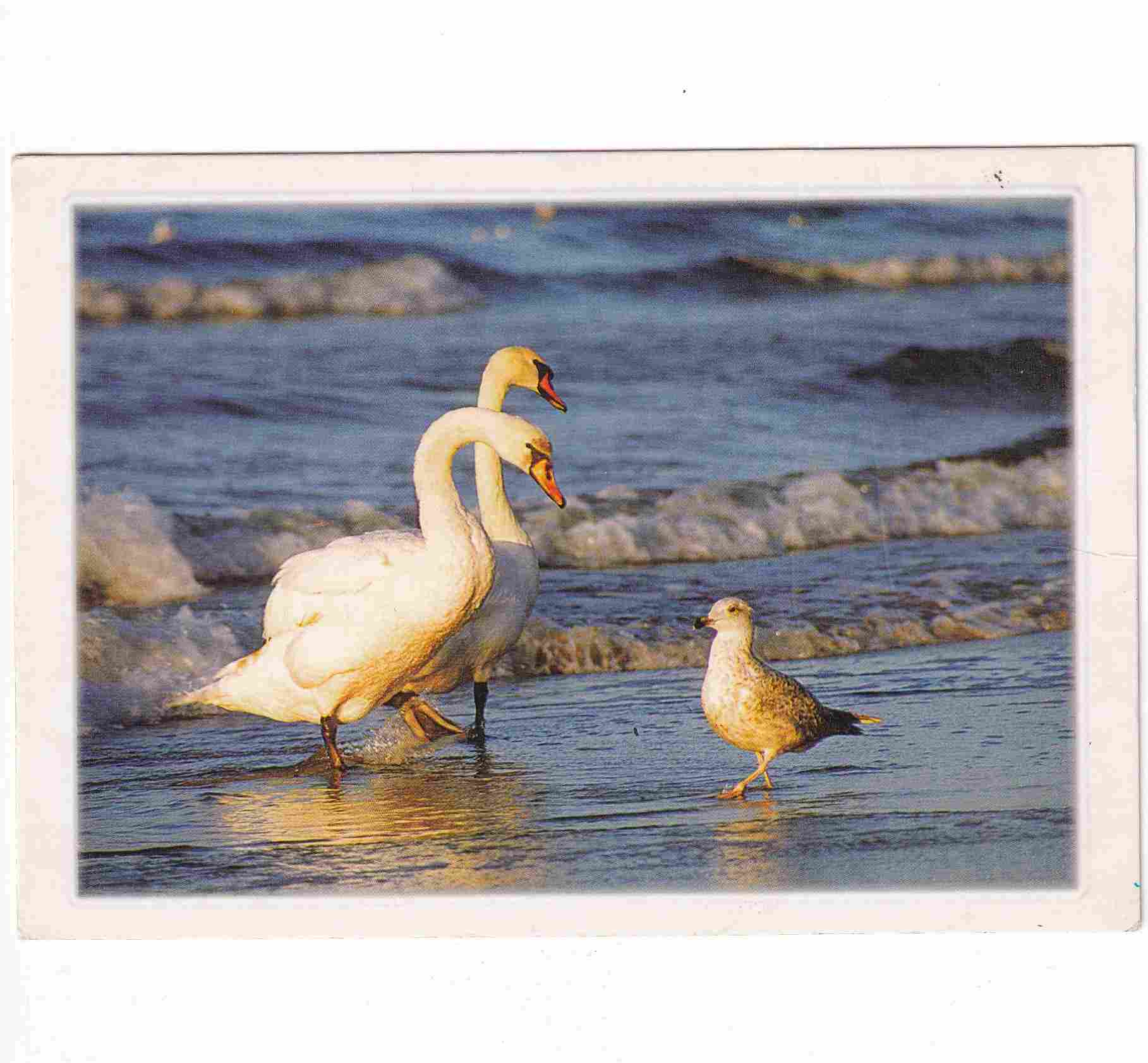 PTAK ŁĄBĘDŹ I MEWA PTAKI POCZTÓWKA A96351