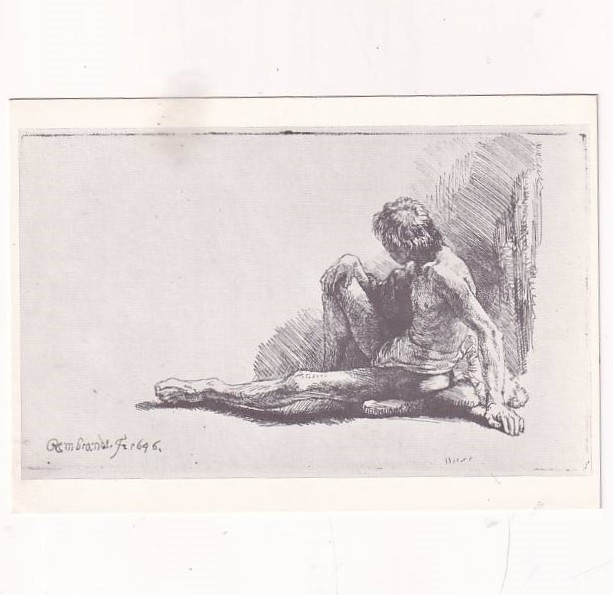 REMBRANDT HOLANDIA SZKIC MŁODY MĘŻCZYZNA 1646r POCZTÓWKA A36829