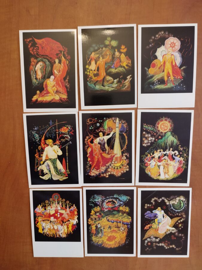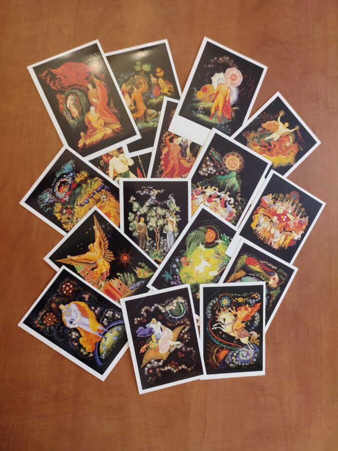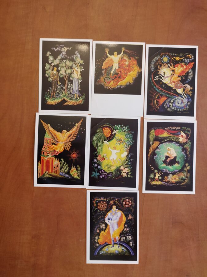 Malarstwo poświęcone znanym ludziom Rosji- zestaw 16 pocztówek + obwoluta.