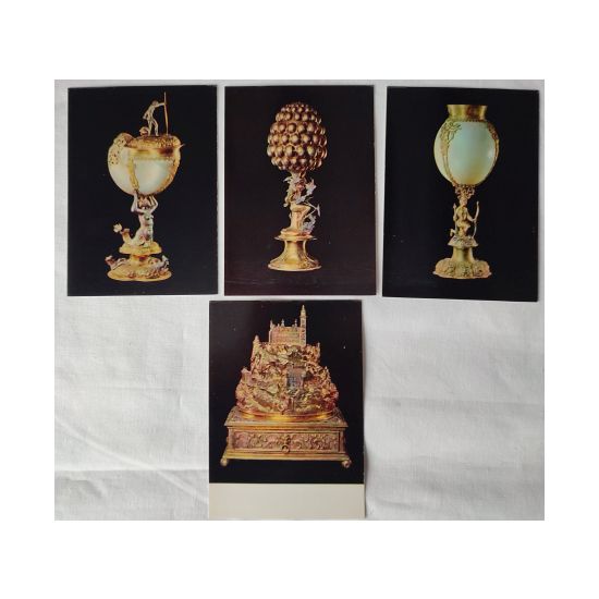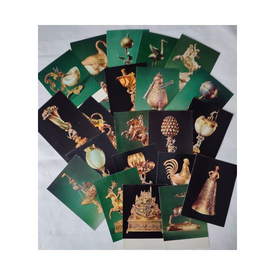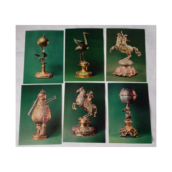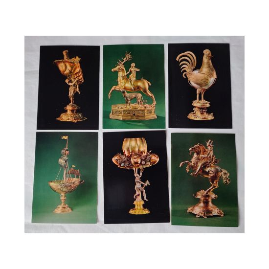 Praca zbiorowa, Serebrjanyje figurnyje sosudy XVI-XVII ww. Silver Figure Vessels of the Sixteenth and Seventeenth Centuries, Orużejnaja Palata The Armoury in the Moscow Kremlin, zestaw 22 pocztówek z reprodukcjami w papierowej lakierowanej obwolucie, s. bdb.