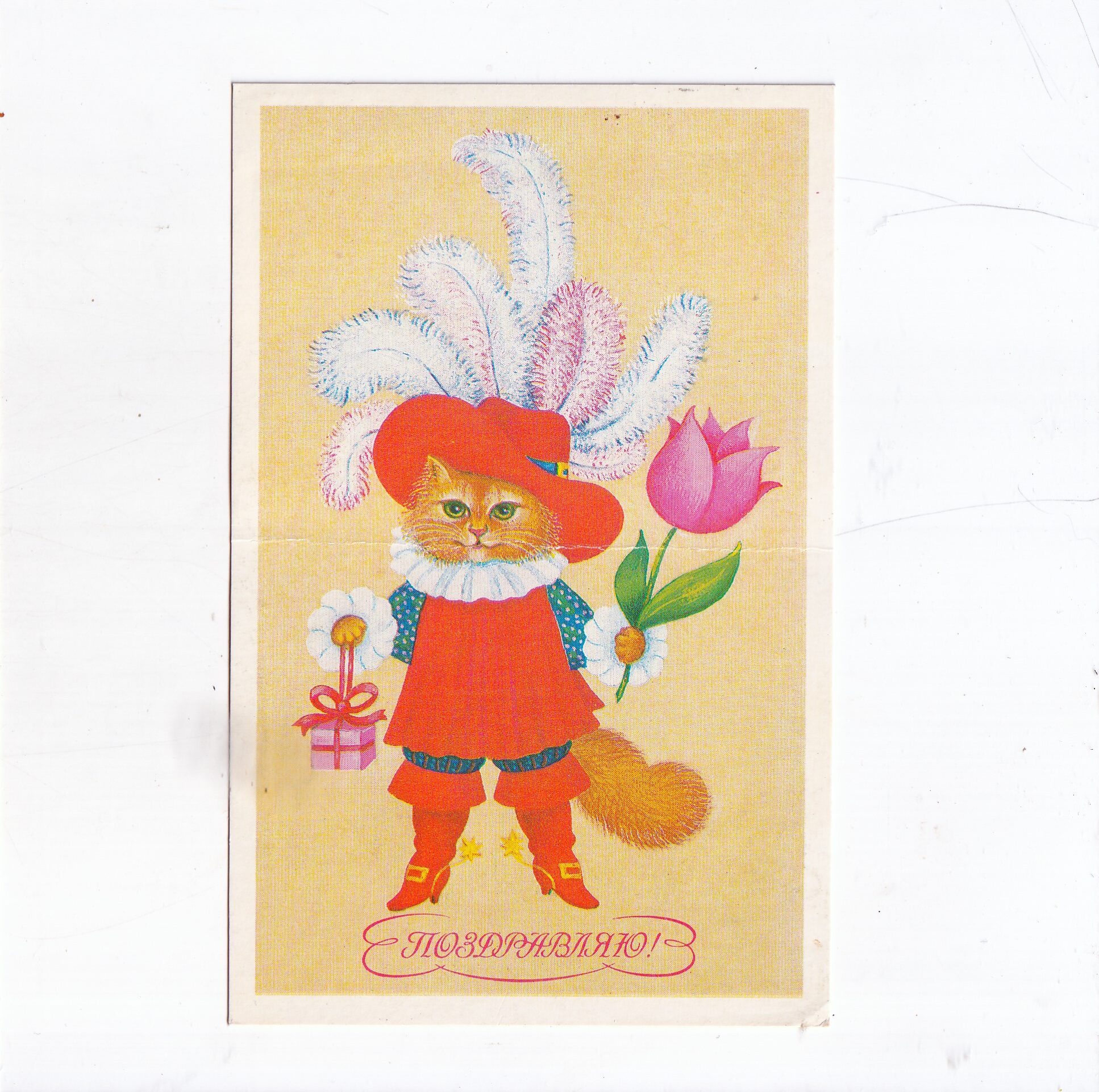 / ROSJA POZDROWIENIA PREZENT KOT W BUTACH POCZTÓWKA A22140