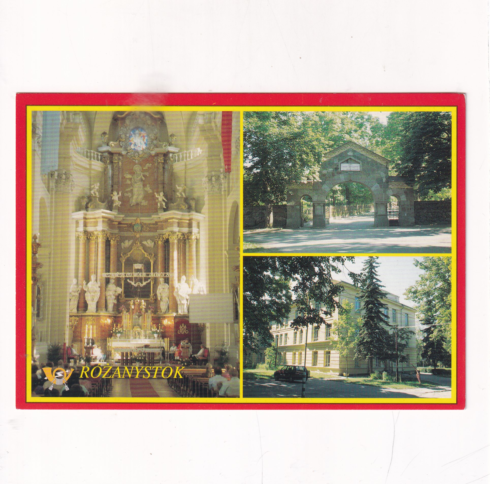 RÓŻANYSTOK WNĘTRZE KOŚCIOŁA BRAMA BUDYNEK SZKOŁY POCZTÓWKA A19707