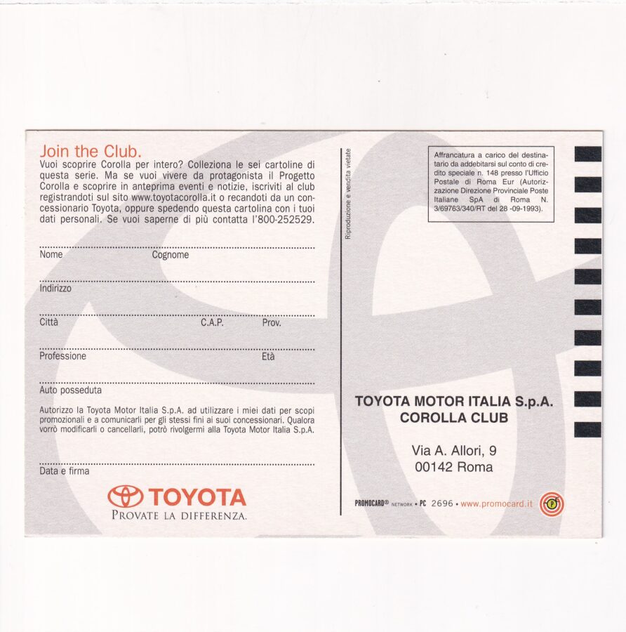 SAMOCHÓD TOYOTA COROLLA POCZTÓWKA A87852