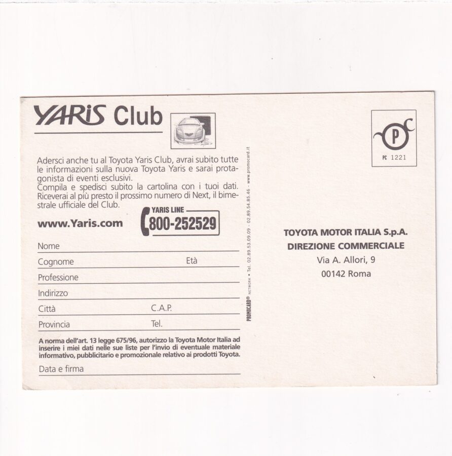SAMOCHÓD TOYOTA YARIS POCZTÓWKA A87860
