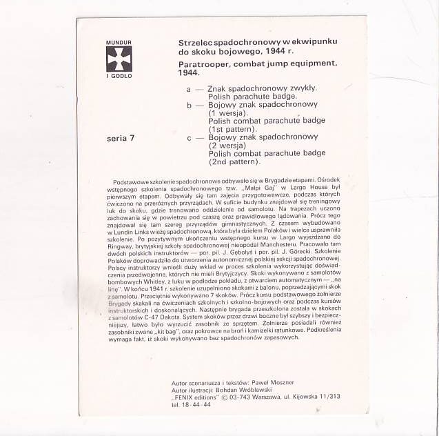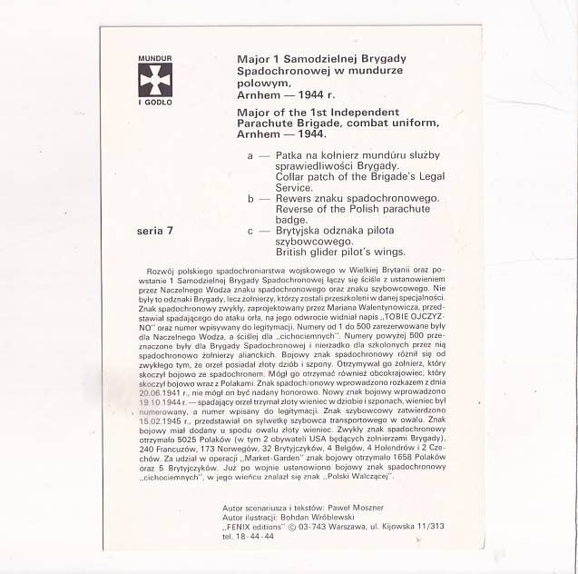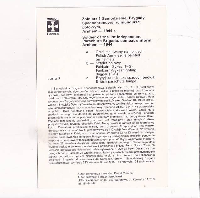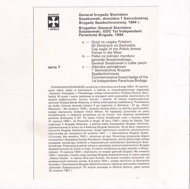 SAMODZIELNA BRYGADA SPADOCHRONOWA PSZ NA ZACH.1941-47 ZESTAW POCZTÓWKA A25993