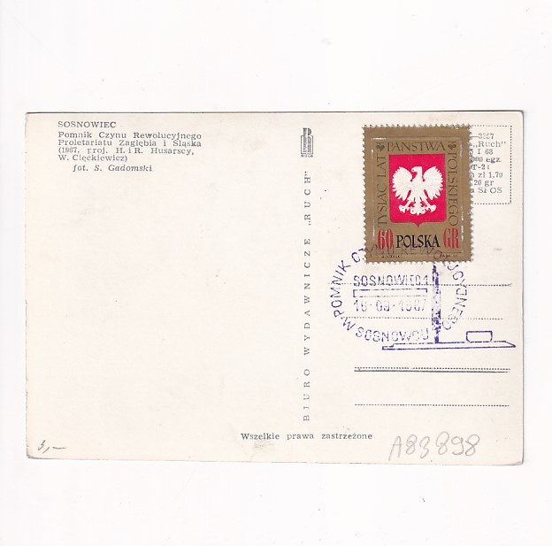 SOSNOWIEC POMNIK CZYNU REWOLUCYJNEGO WIDOKÓWKA A83898