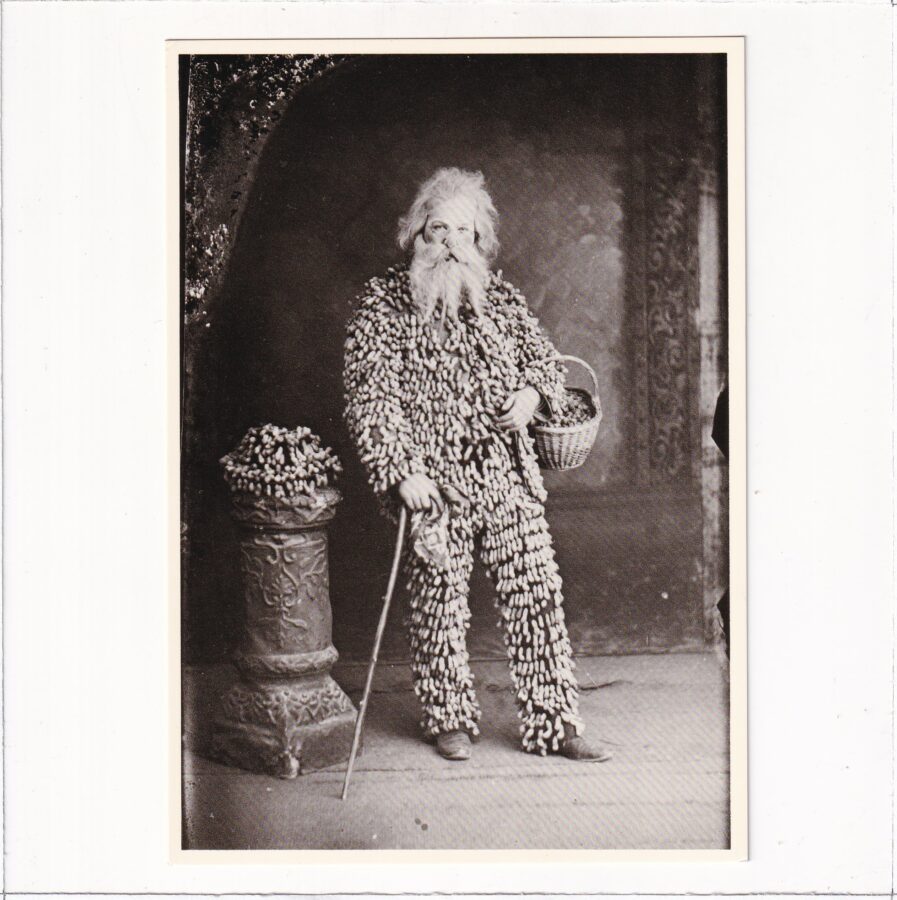 Sprzedawca orzeszków ziemnych rok 1890- w garniturze z orzeszków