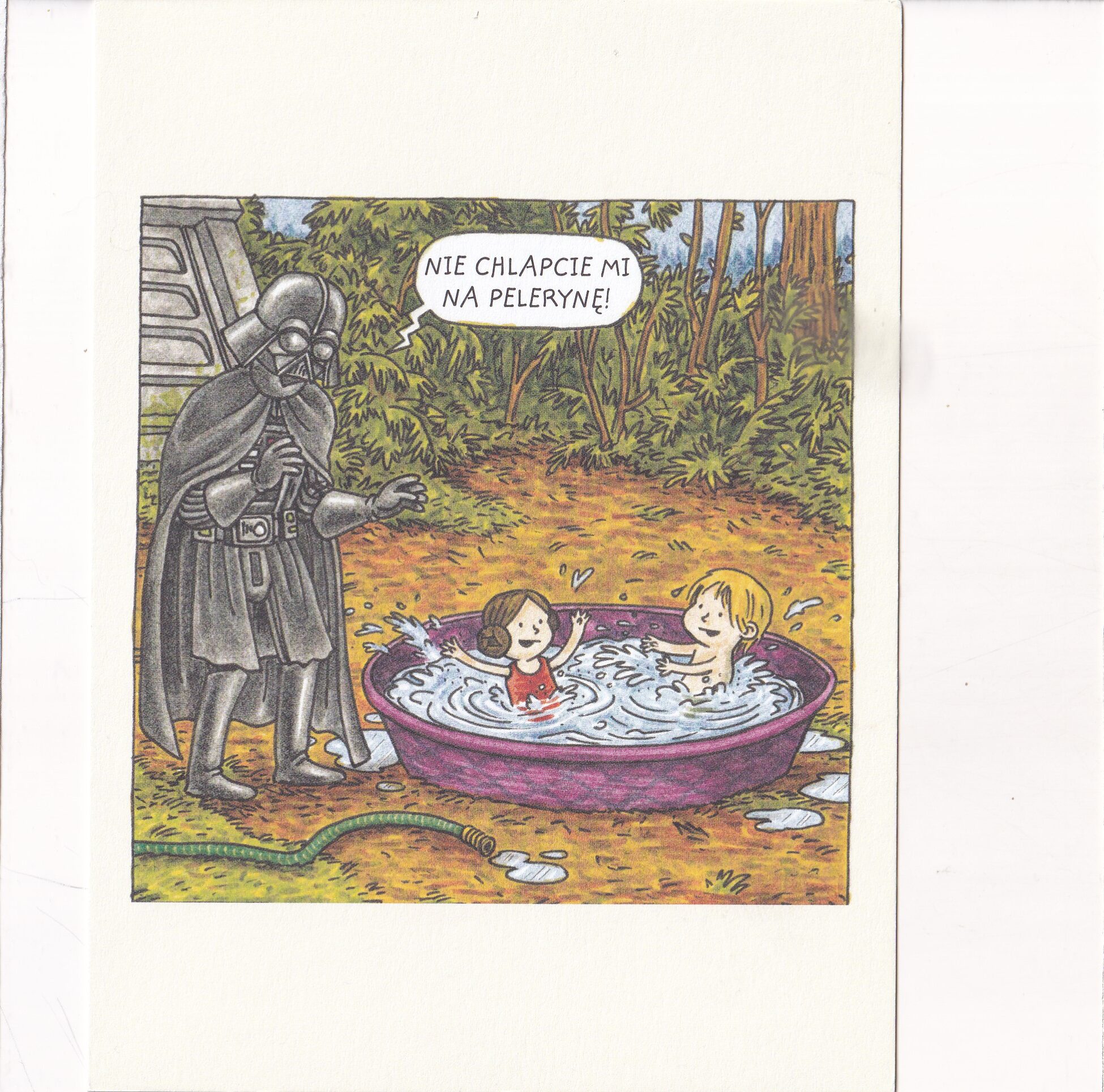 Pocztówka z ilustracjami pochodzącymi z książki „Vader i córeczka” autorstwa Jeffreya Browna.