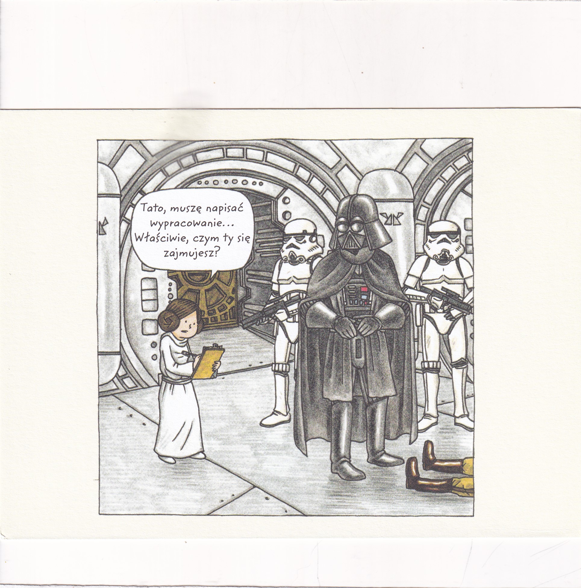 Pocztówka z ilustracjami pochodzącymi z książki „Vader i córeczka” autorstwa Jeffreya Browna.
