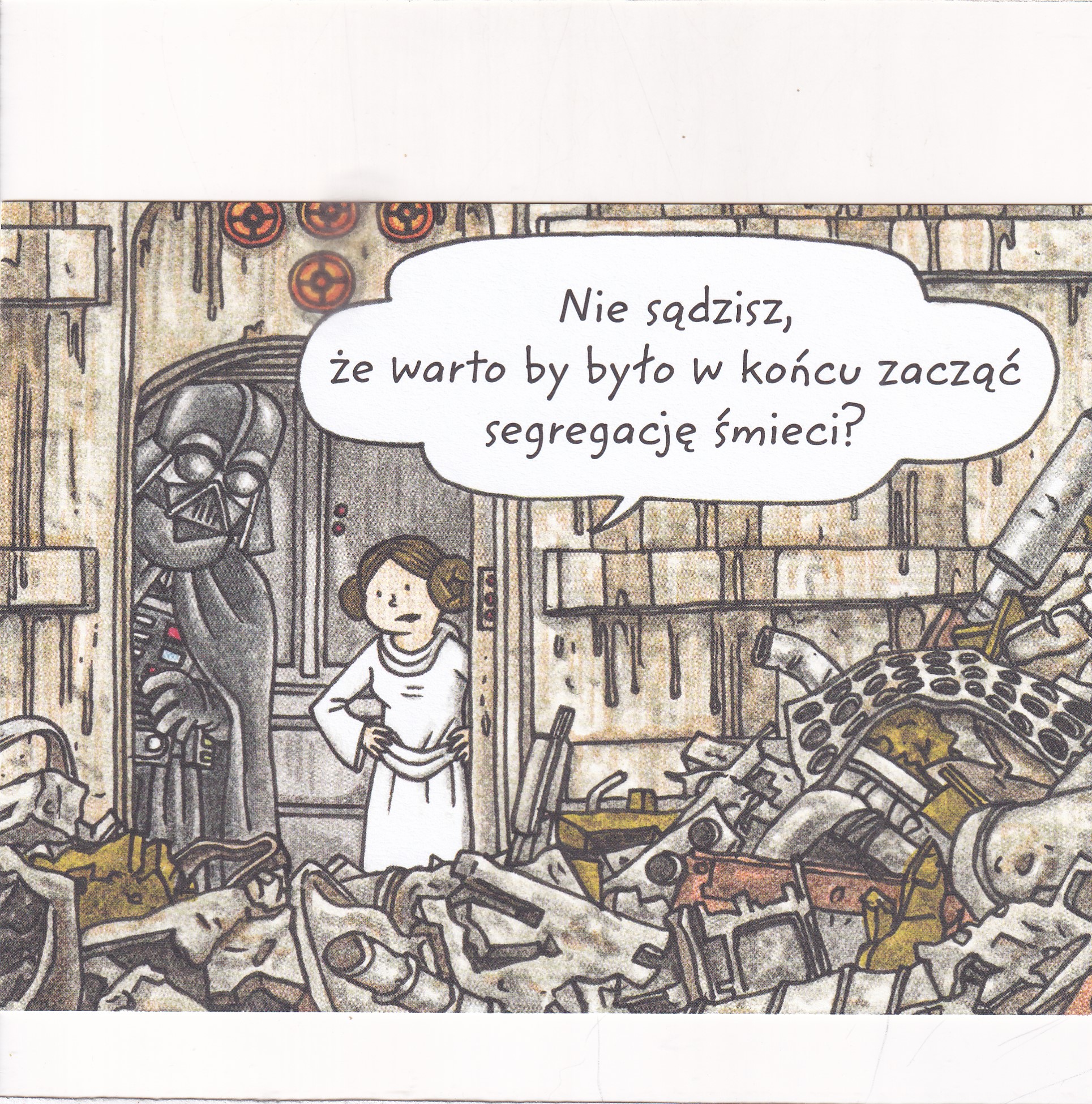 Pocztówka z ilustracjami pochodzącymi z książki „Vader i córeczka” autorstwa Jeffreya Browna.