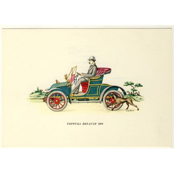 REPUBLICA DEI RAGAZZI STARY SAMOCHÓD RENAULT 1906 GRAFIKA POCZTÓWKA A8528