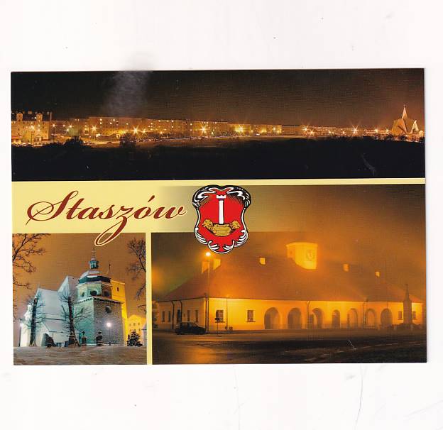 STASZÓW MIASTO NOCĄ HERB WIDOKÓWKA A36778