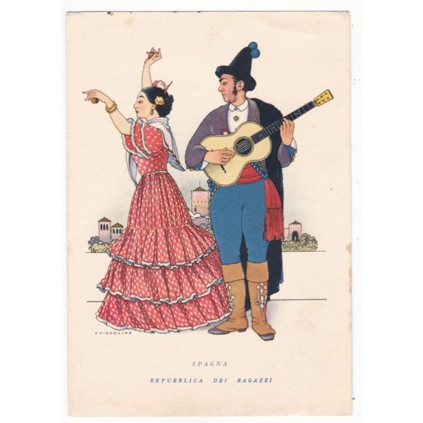 REPUBLICA DEI RAGAZZI STRÓJ LUDOWY HISZPANIA GRAFIKA POCZTÓWKA A61374