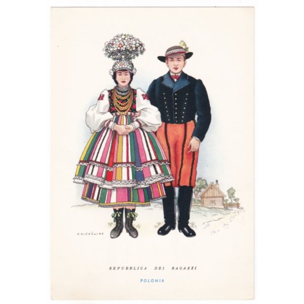 REPUBLICA DEI RAGAZZI STRÓJ LUDOWY POLSKA GRAFIKA POCZTÓWKA A53309