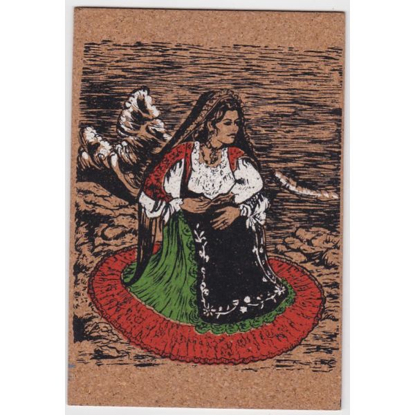 Strój ludowy Sardynia – pocztówka drukowana na korku