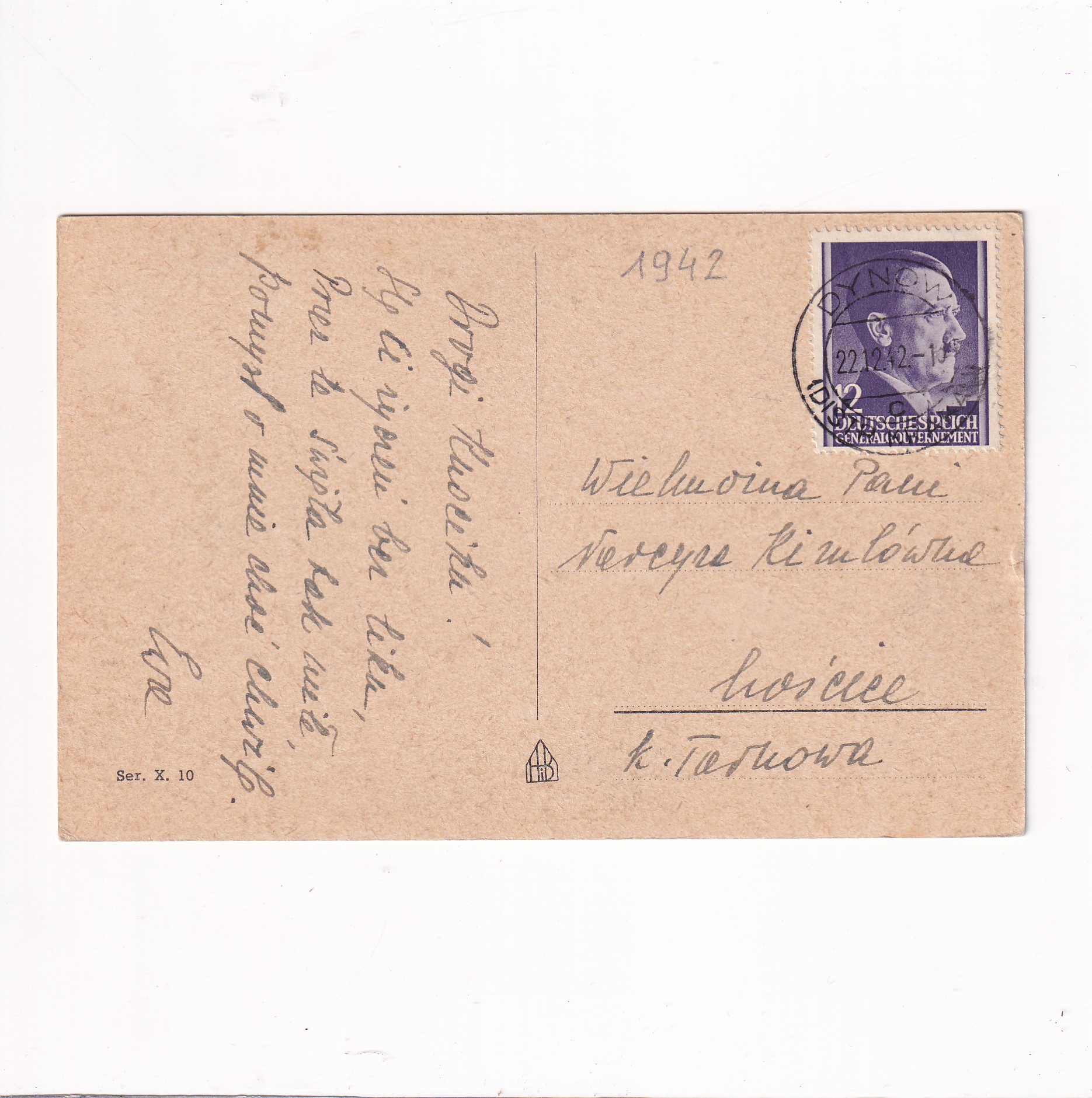 Stan jak na skanie, z obiegu. Znaczek i stempel. Wysłano w roku 1942