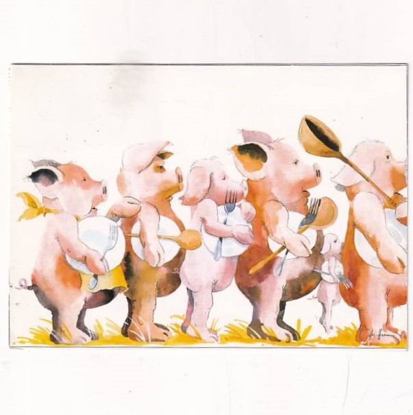 ŚWINKI W SZEREGU PO JEDZENIE POCZTÓWKA A33012