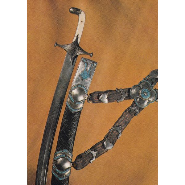 Szabla w srebrnej oprawie, wysadzana turkusami, głownia roboty perskiej, Buchara, XVIII w.