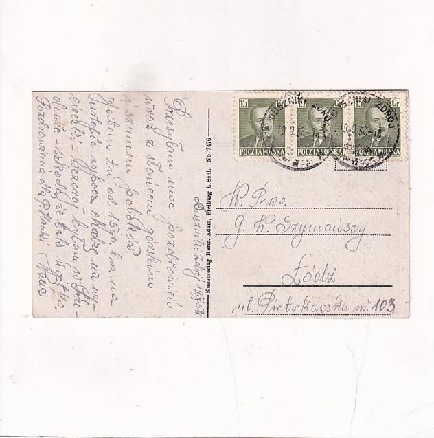 Stan jak na skanie, z obiegu Znaczek i stempel. ROk wysyłki 1952. Wyd:Kunstverlag Herm.aDAM fREIBURG I sCHL. fORMAT:14*9CM