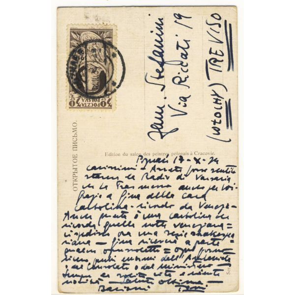 Szekspir Kupiec Wenecki. Pocztówka jak na skanie, z obiegu 1934 r., znaczek 20-lecie wymarszu Legionów 30 gr Fi 267