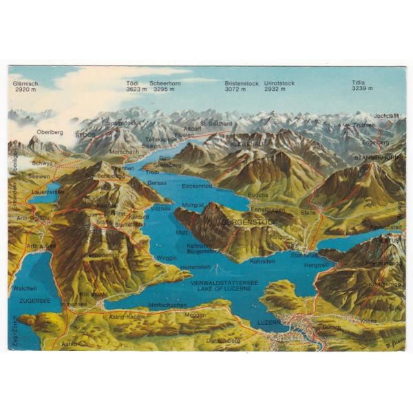 SZWAJCARIA JEZIORO CZTERECH KANTONÓW MAPKA WIDOKÓWKA A49844