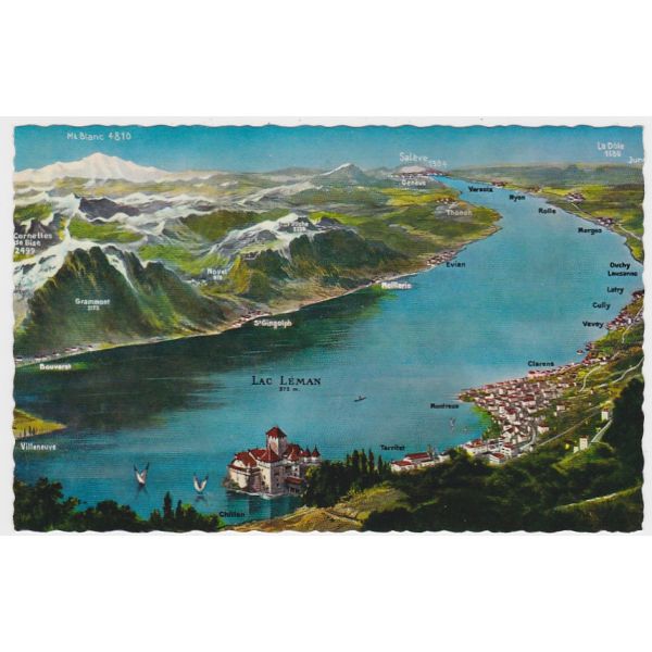 SZWAJCARIA LAC LEMAN ZAMEK CHILLON MAPKA WIDOKÓWKA A57972