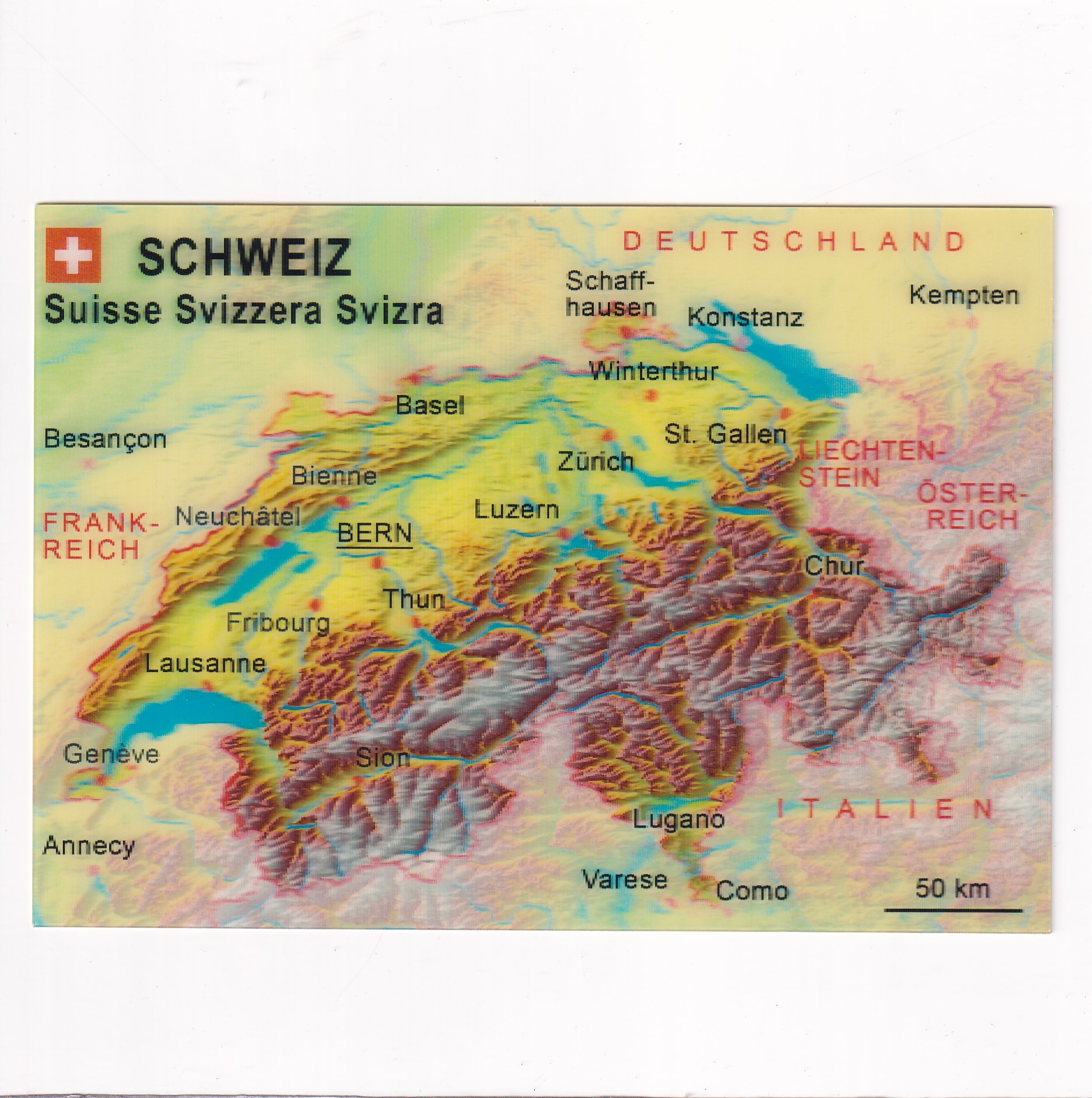 SZWAJCARIA MAPKA GÓRY 3D POCZTÓWKA TRÓJWYMIAROWA A15533