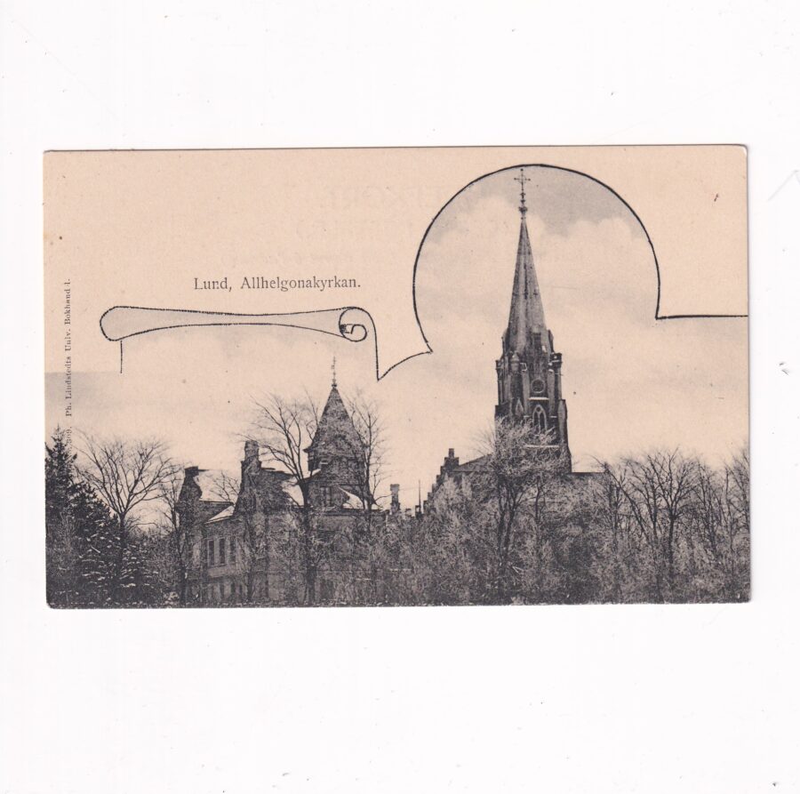 Widokówka ze Szwecji.Lund – miasto w południowo-zachodnim regionie Szwecji, w prowincji Skanii, na północny wschód od Malmö; siedziba władz gminy Lund, wchodzącej w skład transgranicznego regionu Öresund, obejmującego fragmenty terytoriów Danii i Szwecji.