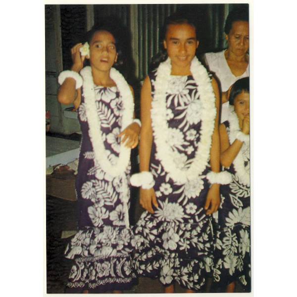 Dziewczęta w wieńcach z kwiatów tiare.