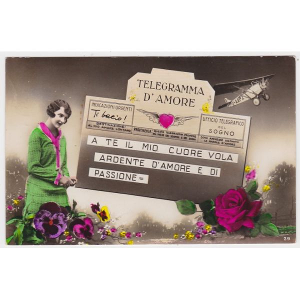 TELEGRAM MIŁOSNY KOBIETA SAMOLOT POCZTÓWKA A47770