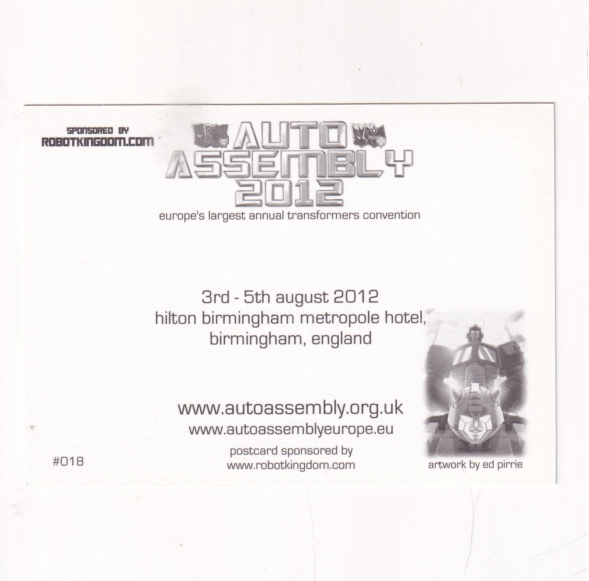 TRANSFORMERS AUTOASSEMBLY 2012 POCZTÓWKA A19447