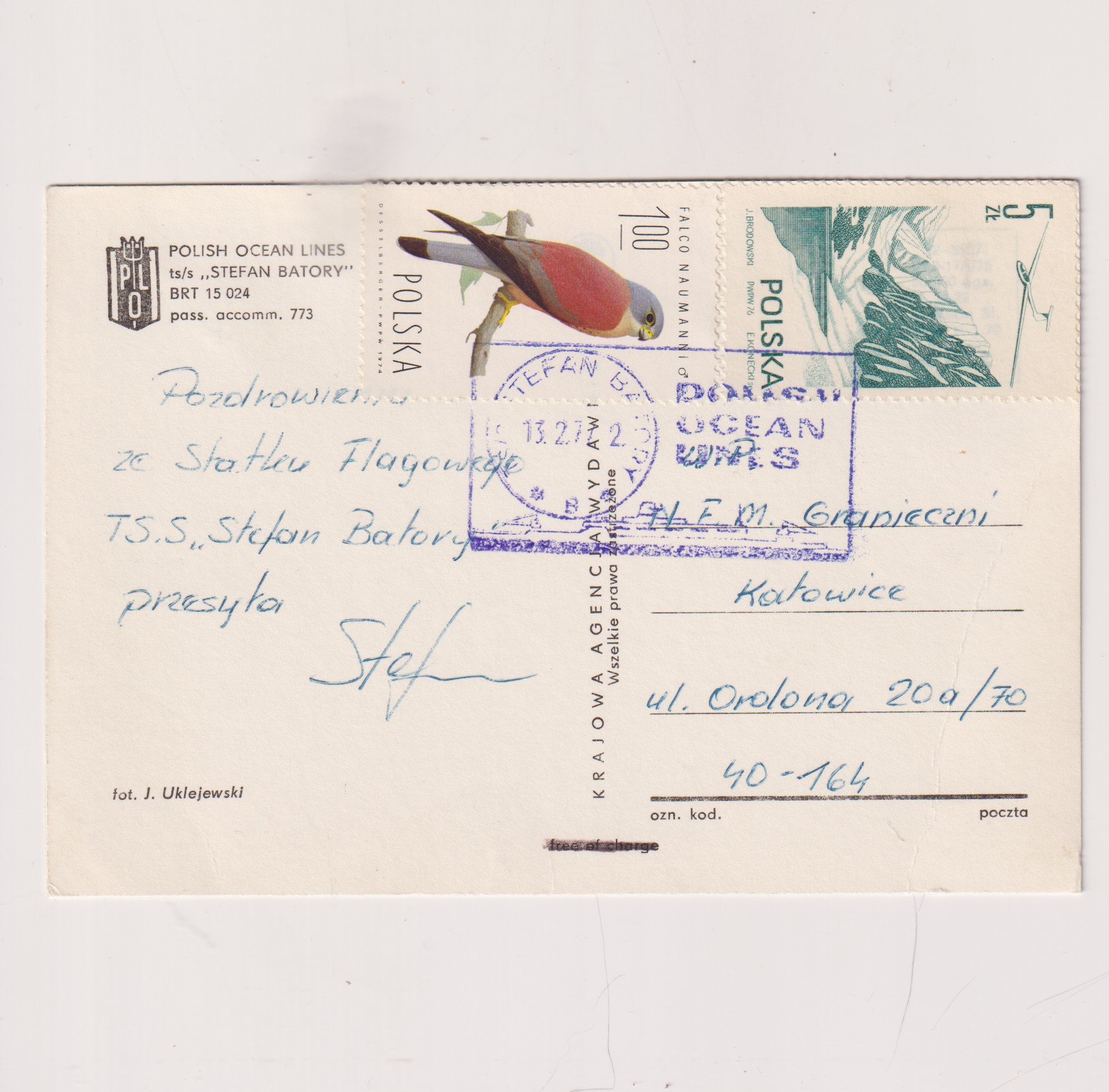 TS/S „STEFAN BATORY’ POCZTÓWKA A7170