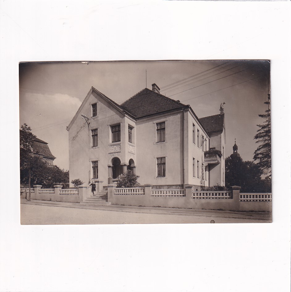 Urząd gminy budynek administracyjny. Z tyłu opis pocztówki ołowkiem