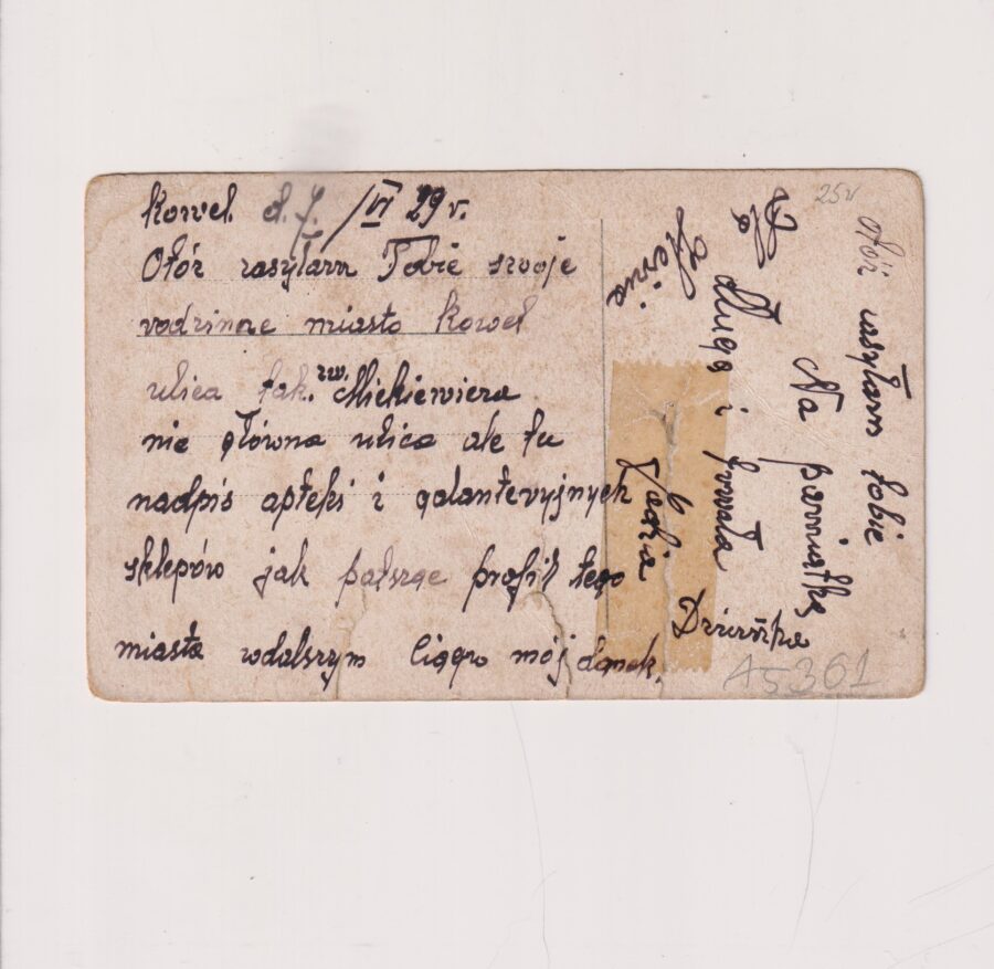 Stan jak na skanie, z obiegu. Rok 1929. Miasto Kowel – z treści korespondencji wynika że ulica nosiła nazwę MICKIEWICZA.