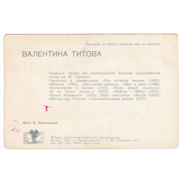 WALENTINA TITOWA AKTORKA POCZTÓWKA A44967