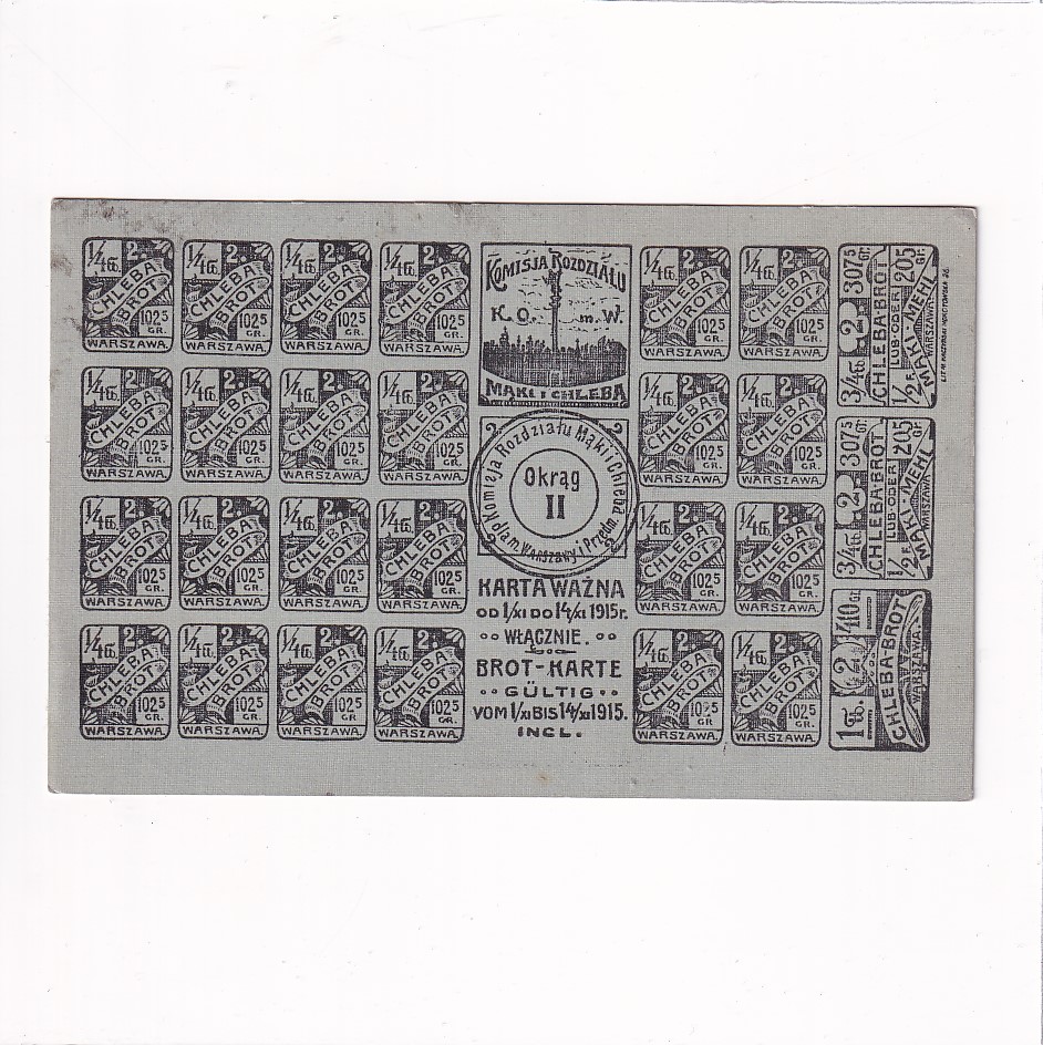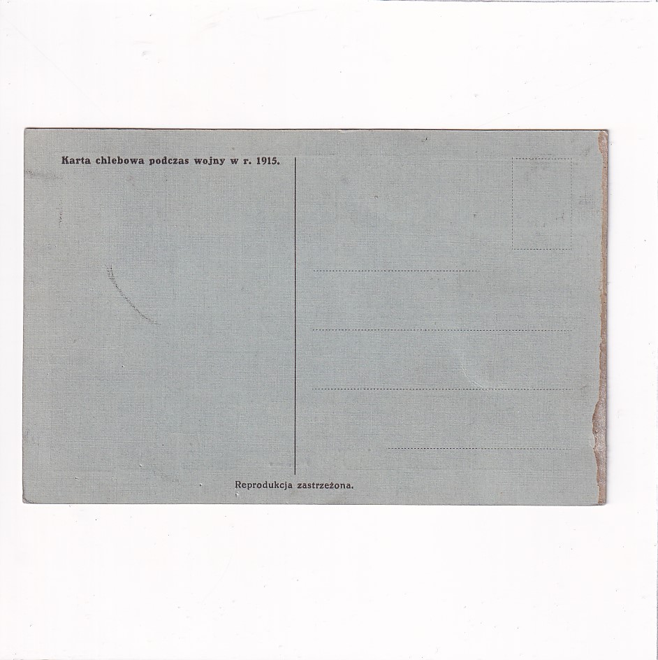 WARSZAWA KARTKA CHLEBOWA POCZAS WOJNY 1915 ROK POCZTÓWKA A17266 ALBUM