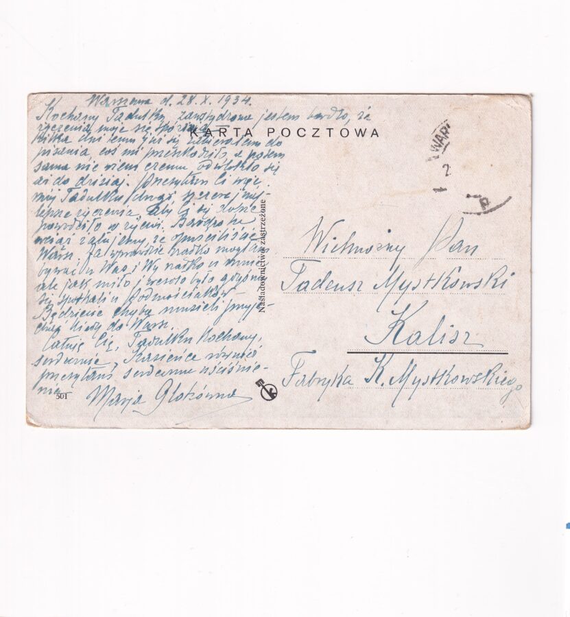 Widokówka jak na skanie, z obiegu 1934 r. Znaczka brak.Format:14*9cm