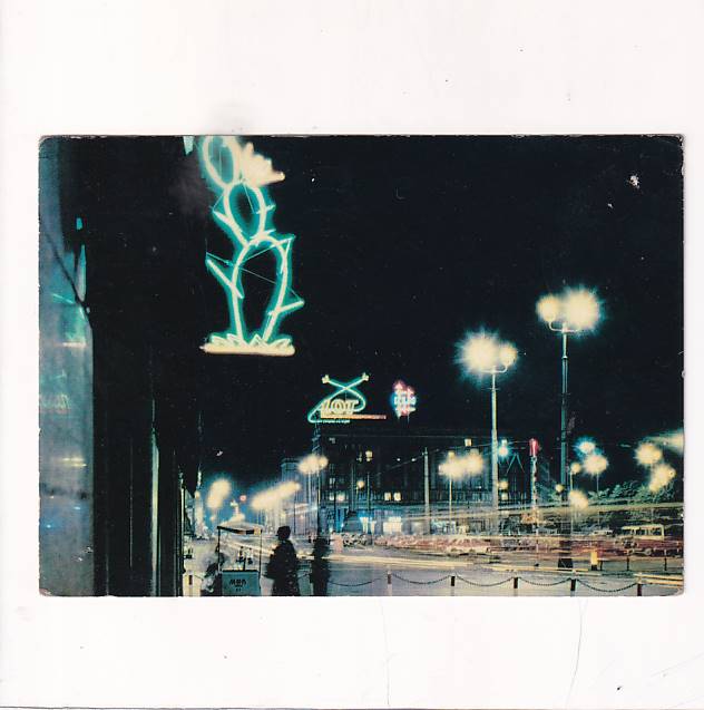 WARSZAWA MIASTO NOCĄ NEONY WIDOKÓWKA A31186
