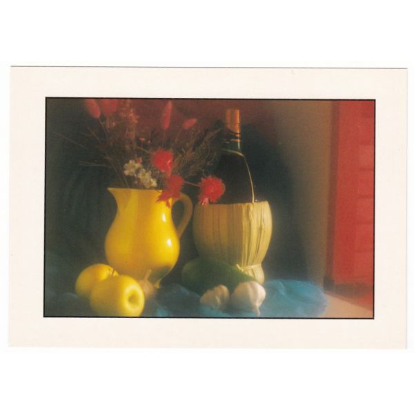 WAZON Z KWIATAMI I WINO POCZTÓWKA ARTYSTYCZNA A42106