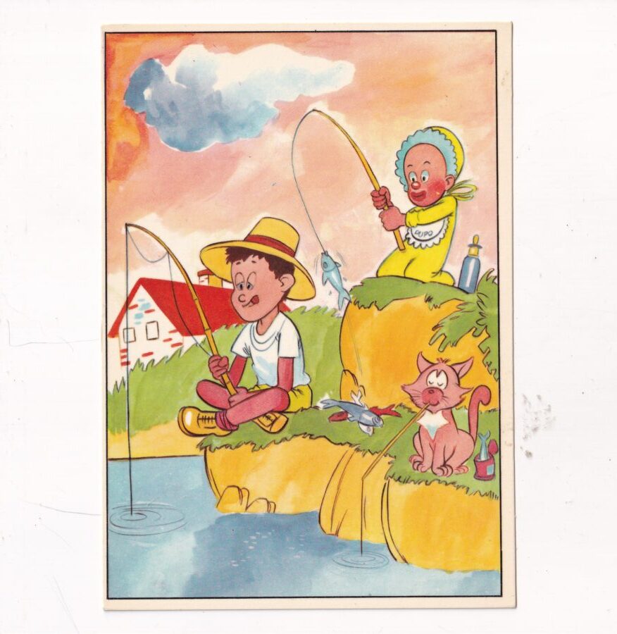 / WĘDKARZ RYBAK RYBOŁÓWSTWO DZIECKO KOT POCZTÓWKA A2407
